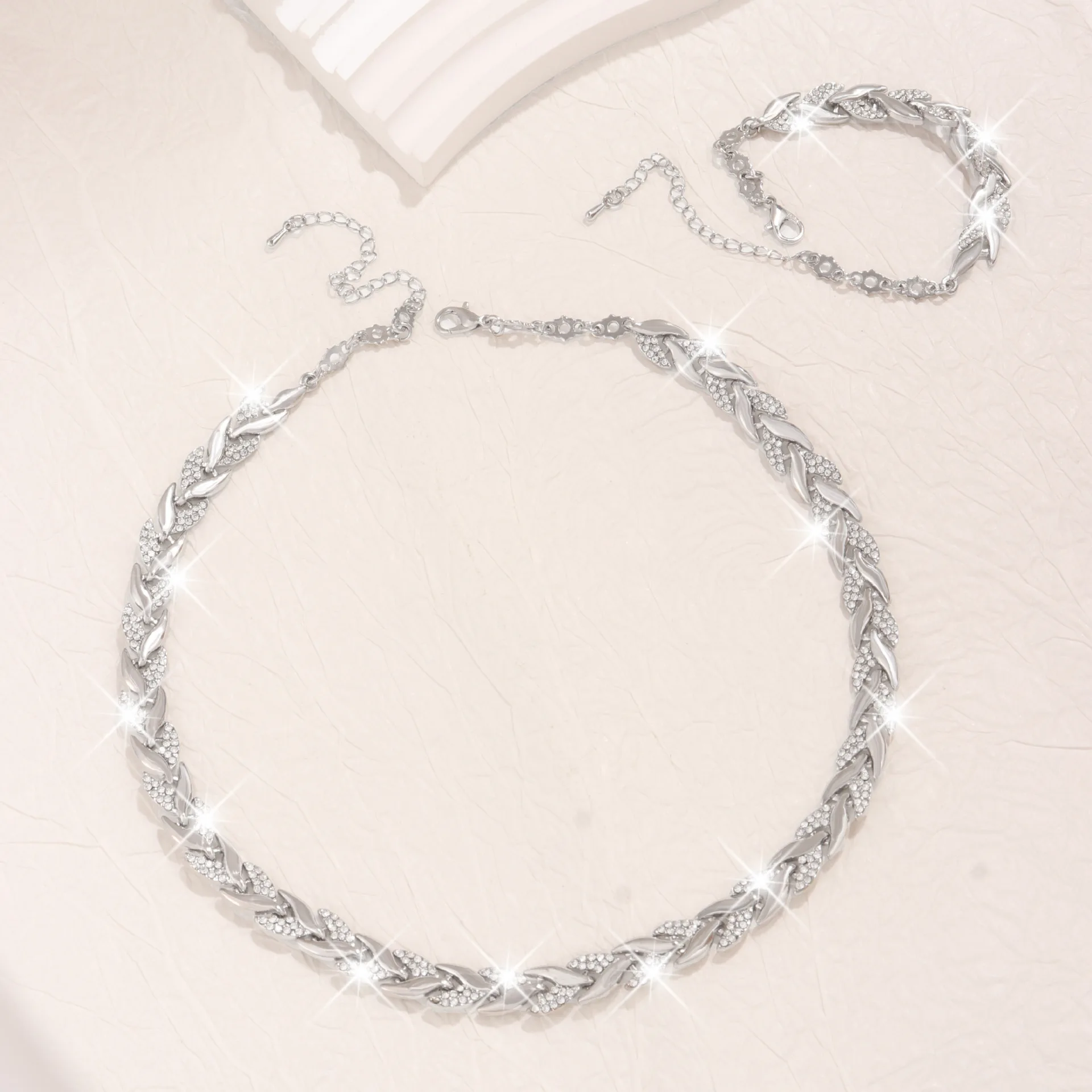 Encante-se com este sofisticado conjunto composto por colar com design cauda de peixe e pulseira combinando, perfeito para mulheres que amam brilho e requinte.