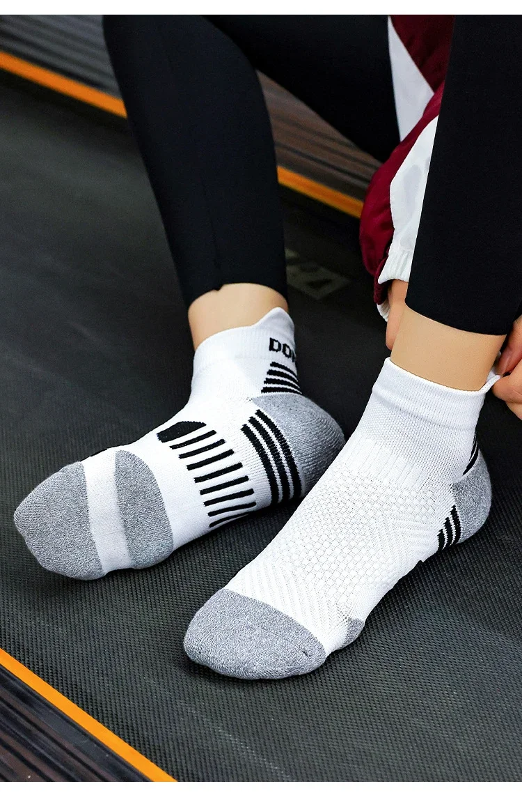 Modelos com corte baixo (no tornozelo) ou no-show são populares com tênis de corrida e oferecem boa ventilação.