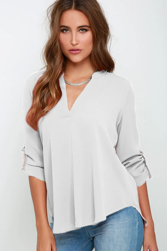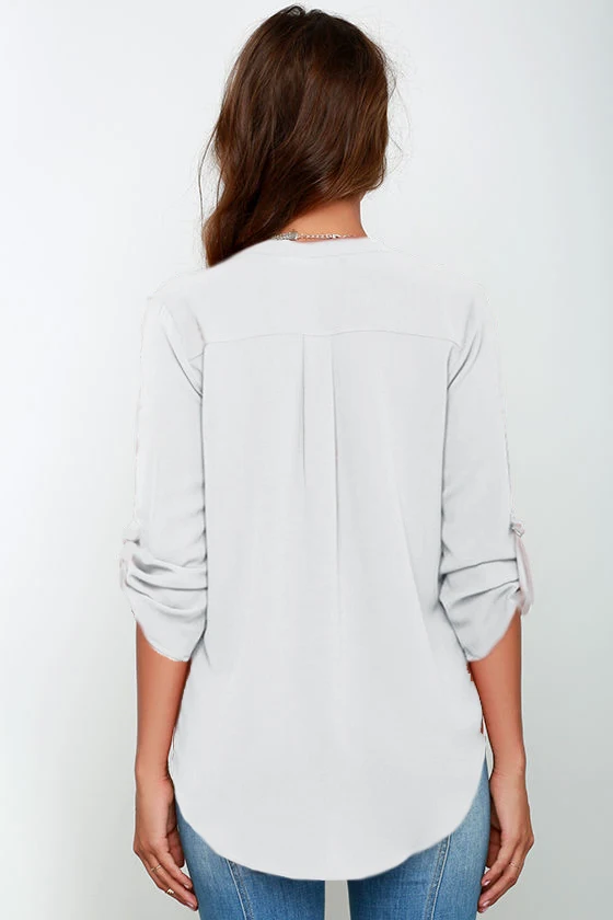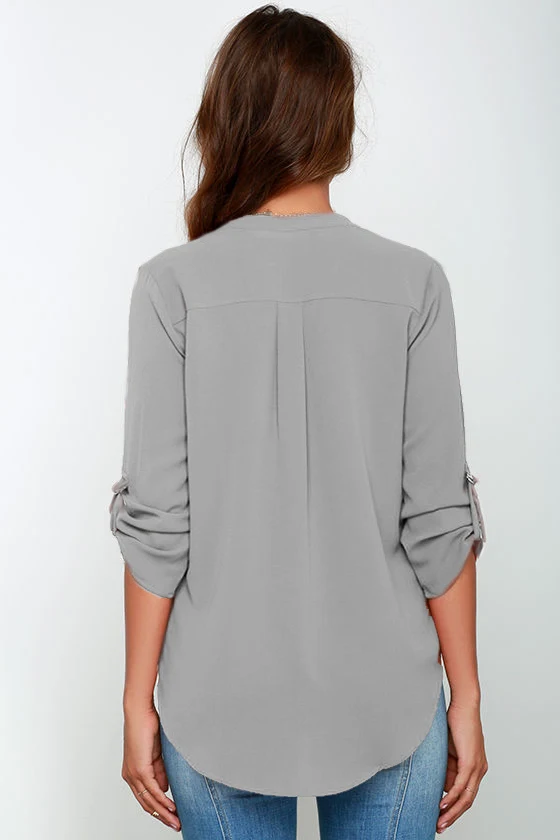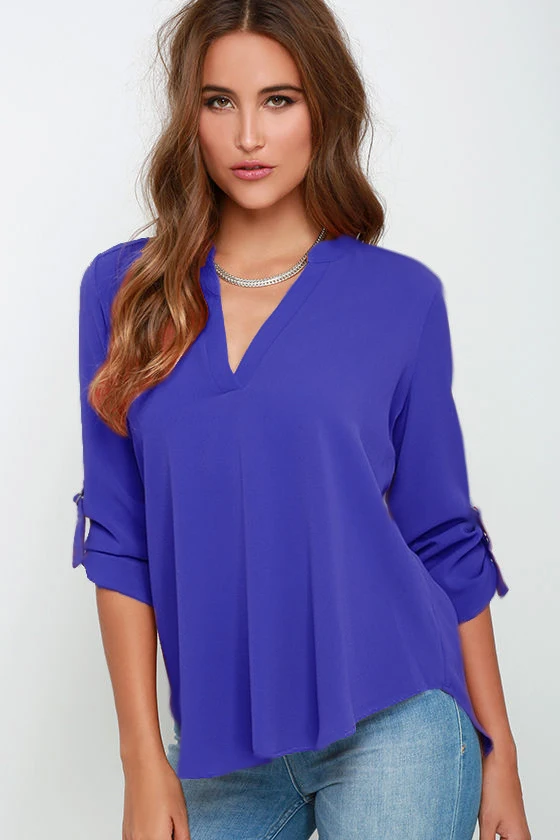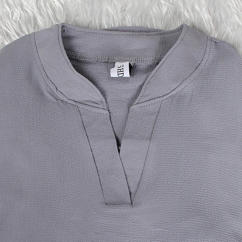 A Blusa Feminina de Chiffon com Manga Comprida e Decote em V é a escolha perfeita para mulheres que buscam sofisticação e leveza no ambiente de trabalho.