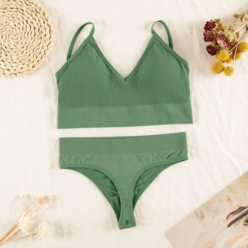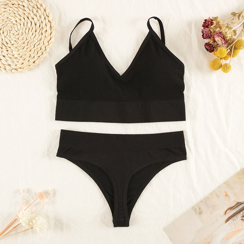 2 peças: sutiã bralette sem aro sem costura + calcinha tipo g-string sexy.