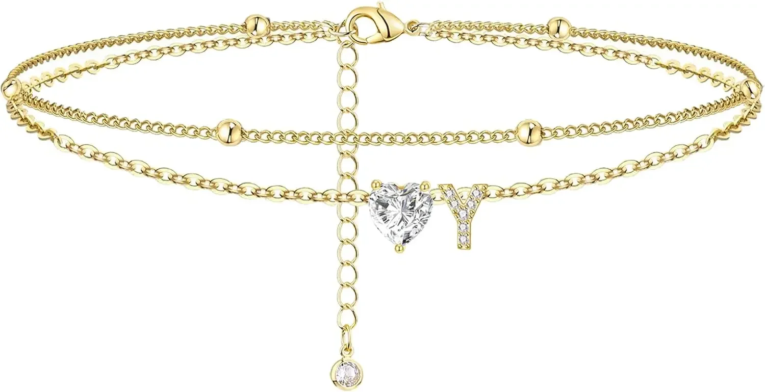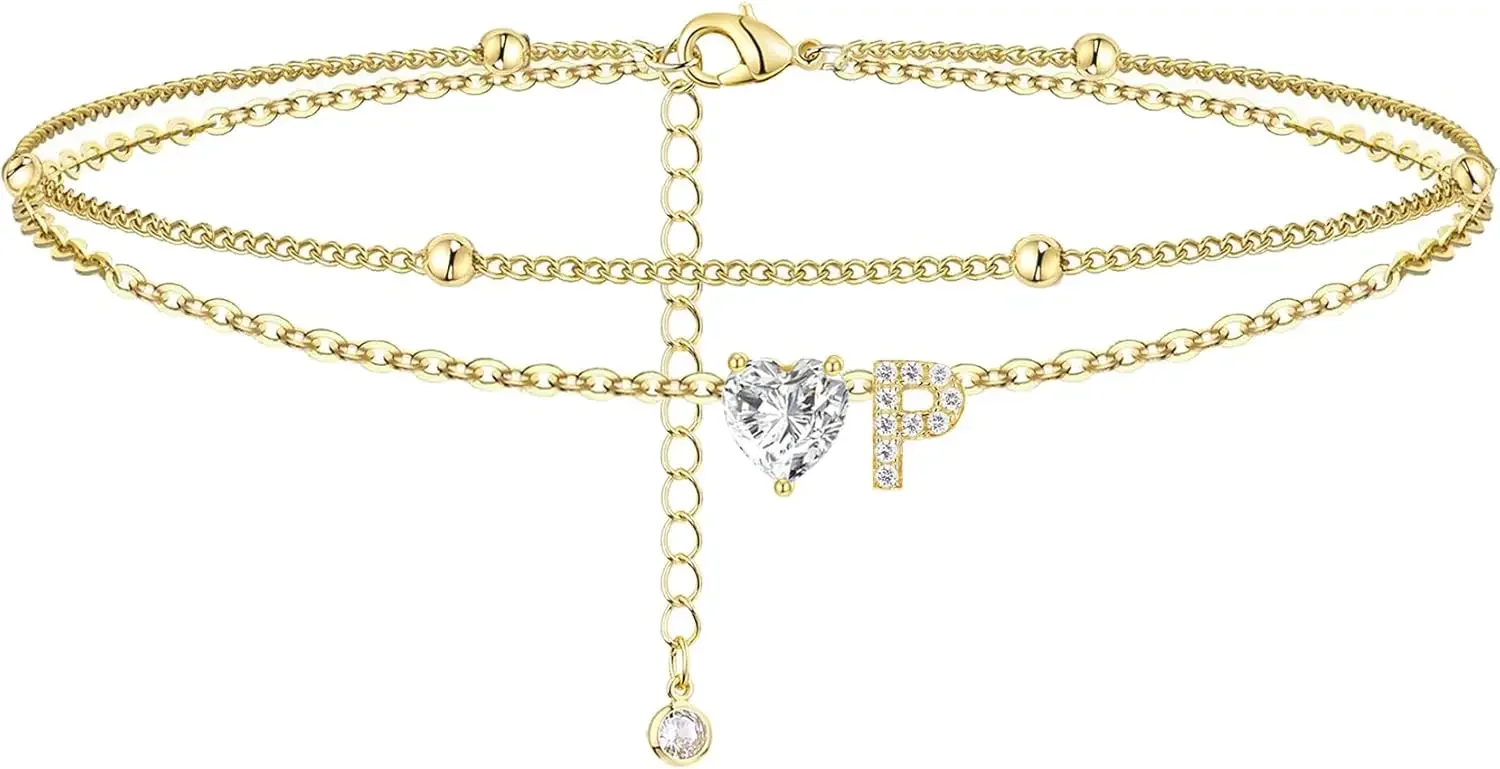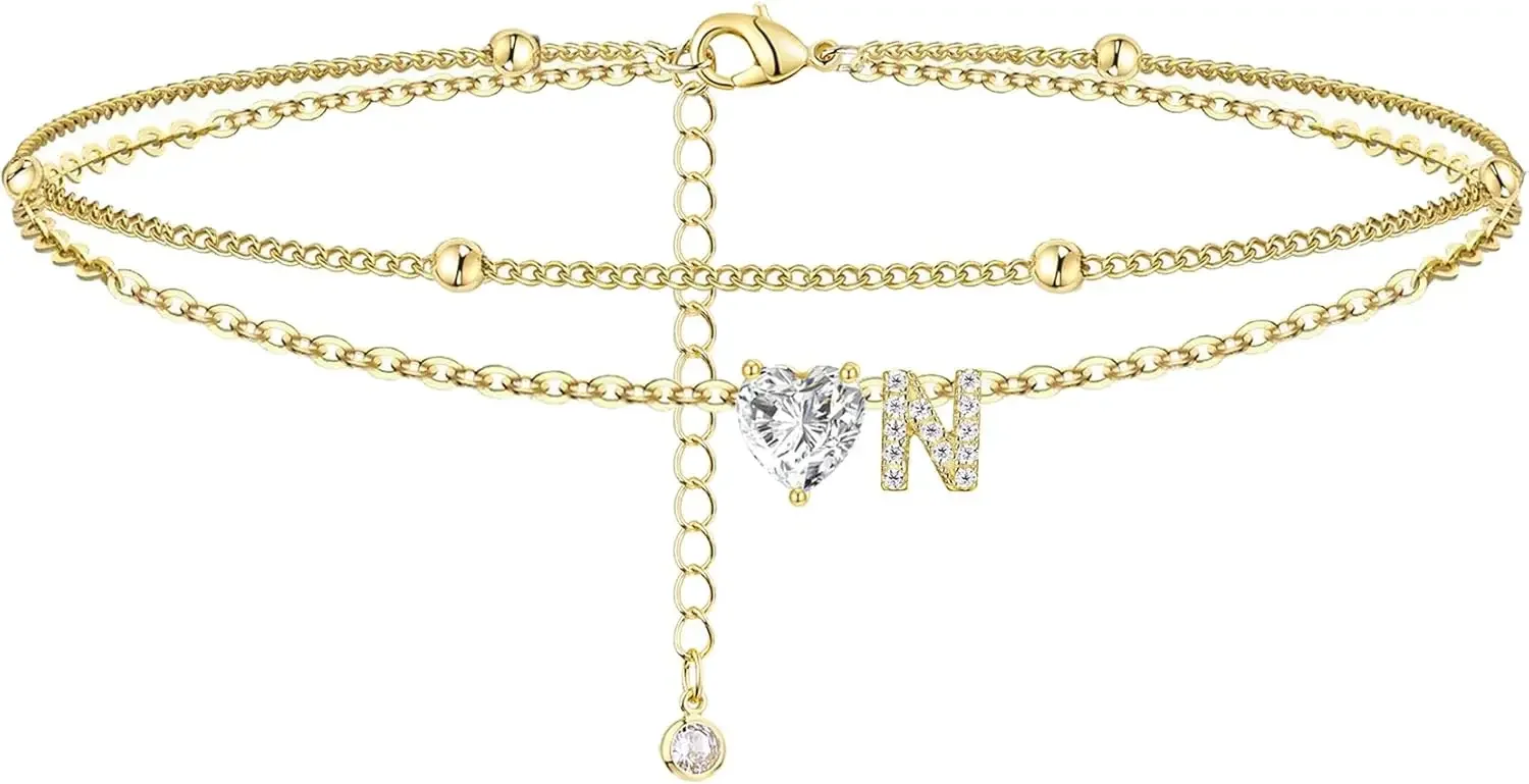 Design de pulseiras de tornozelo:Esta tornozeleira dourada usa um design multicamadas, uma tornozeleira com um coração CZ brilhante e uma corrente de miçangas, diferente da combinação tradicional para que você se destaque da multidão.O pequeno coração é gravado com o inicial, dando ao tornozelo inicial um significado mais especial.As tornozeleiras douradas são a escolha perfeita para suas joias de verão